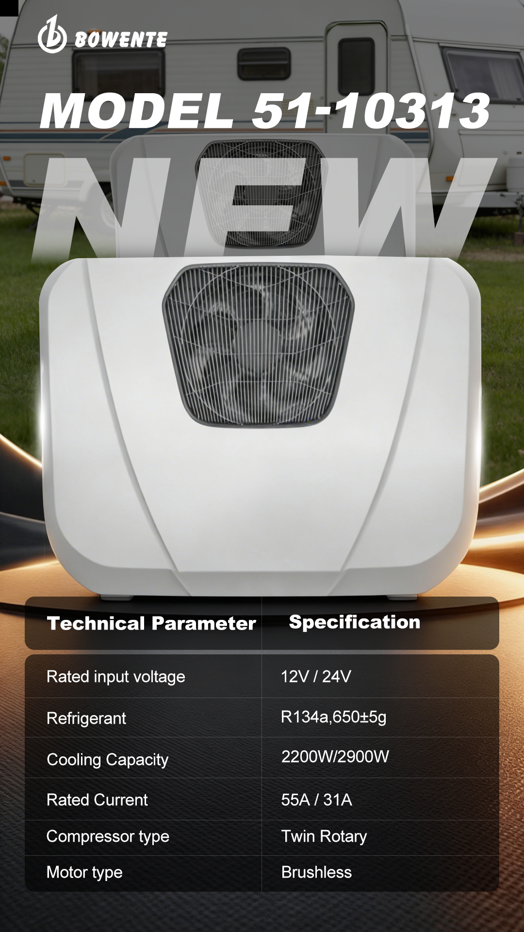 As a leader in specialized automotive climate control, Bowente introduces the Model 51-10313. Specifically engineered for long-haul logistics and luxury RVs, this unit leverages industrial-grade Twin Rotary Compressor technology to provide superior cooling performance without the engine idling. For B2B wholesalers and fleet operators, this model represents the pinnacle of reliability and fuel-saving technology in the current truck parking air conditioner market.